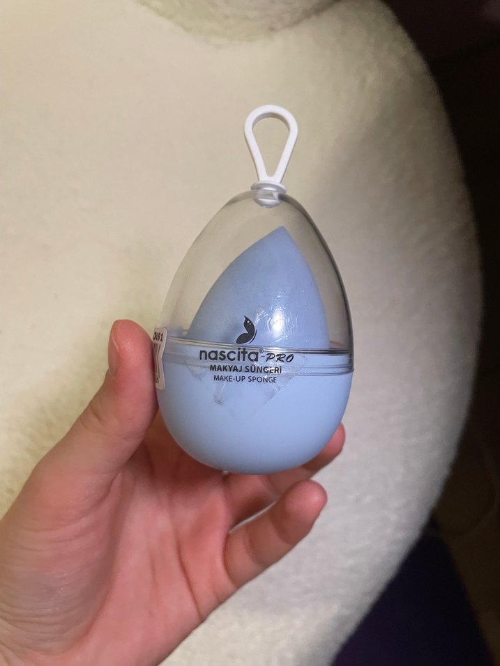 Nascita markasına ait pastel mavi makyaj süngeri, pürüzsüz ve eşit makyaj uygulaması sağlar. Şeffaf koruyucu kutusu ile hijyenik saklanır.