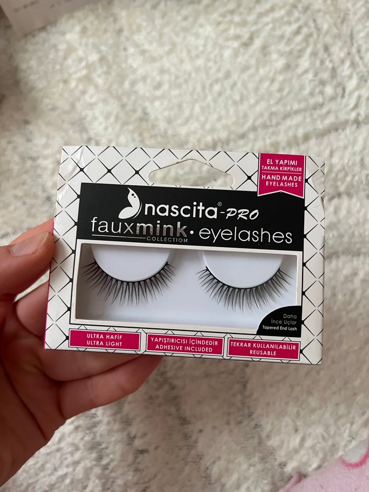 Onascita-Pro el yapımı sahte kirpikler, bej renkli koyu tonlarda. Ultra hafif, yapıştırıcı dahil ve tekrar kullanılabilir. Sıfır kutu yapıştırıcısı içinde