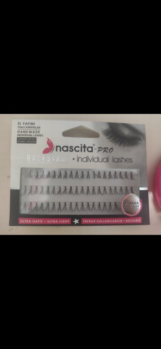 Nascita Pro'nun el yapımı siyah bireysel takma kirpikleri ultra hafif ve tekrar kullanılabilir özellikte, doğal görünüm sağlar.