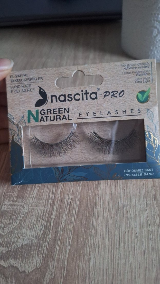 Sıfır hiç kullanılmadı. Nascita-Pro yeşil el yapımı takma kirpikler, görünmez bantlı, ultra hafif ve tekrar kullanılabilir.