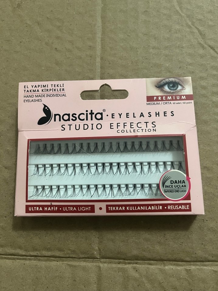 Nascita Studio Effects el yapımı tekli takma kirpikler, bej renkte. Ultra hafif ve tekrar kullanılabilir, orta kalınlıkta. ✨