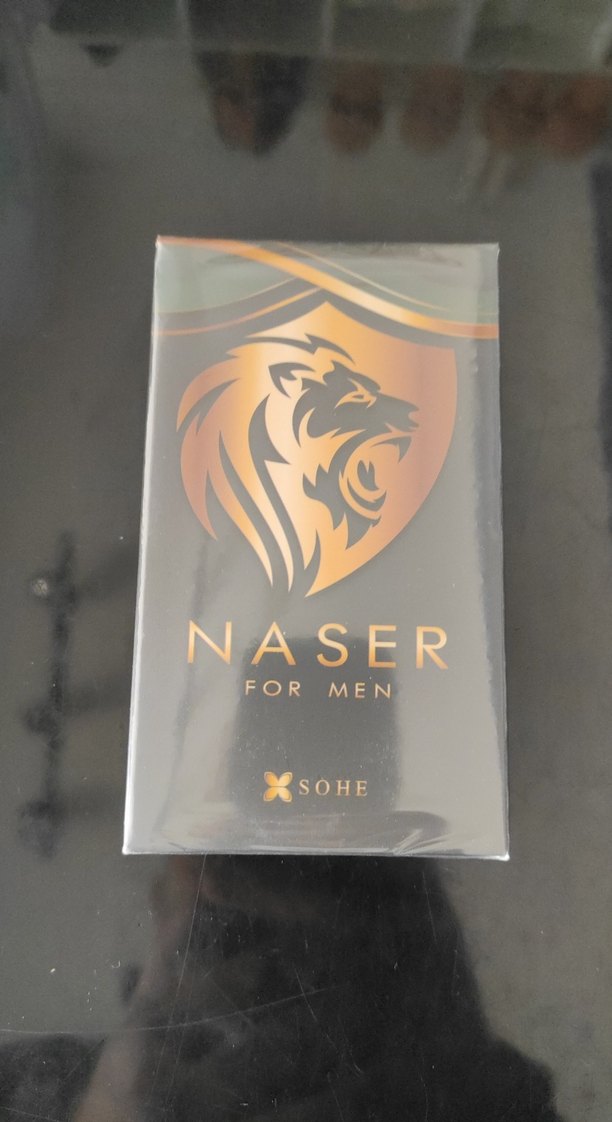 Naser For Men, parlak deve tüyü renginde kutusu ve aslan sembolü ile erkek parfümüdür. Normcore ve athleisure stilinde, marka ve detaylar kutuda yer alır.