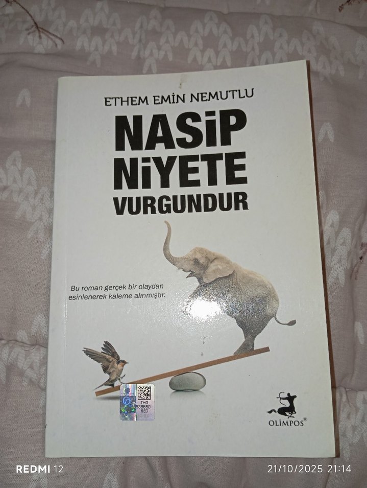 Ethem Emin Nemutlu'nun gerçek bir olaydan esinlenerek yazdığı "Nasip Niyete Vurgundur" kitabı, kapakta fil ve kuşun yer aldığı eğlenceli bir görselle sunuluyor.