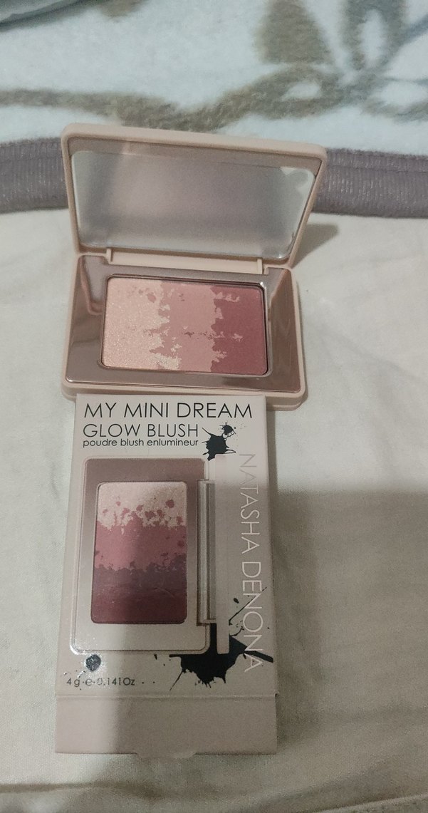 Natasha Denona'nın açık pembe ışıltılı allığı, yumuşak ve doğal bir ışıltı sağlar, yanaklara hafif renk katar.