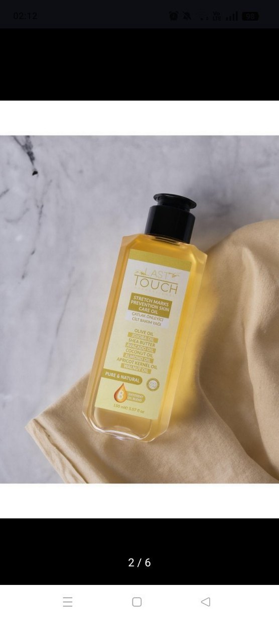 NATGRAD Touch cilt bakım yağı, zeytin, shea yağı, hindistancevizi ve kayısı çekirdeği yağları içerir. 150 ml saf ve doğal formül. hamilelikte çatlaklar için aldım fazla kaldı kapağı bile açılmadı