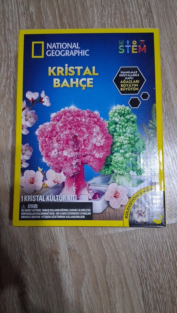 National Geographic Kristal Bahçe STEM seti, pastel renklerde ağaç modelleri üzerinde renkli kristaller yetiştirmenizi sağlar.