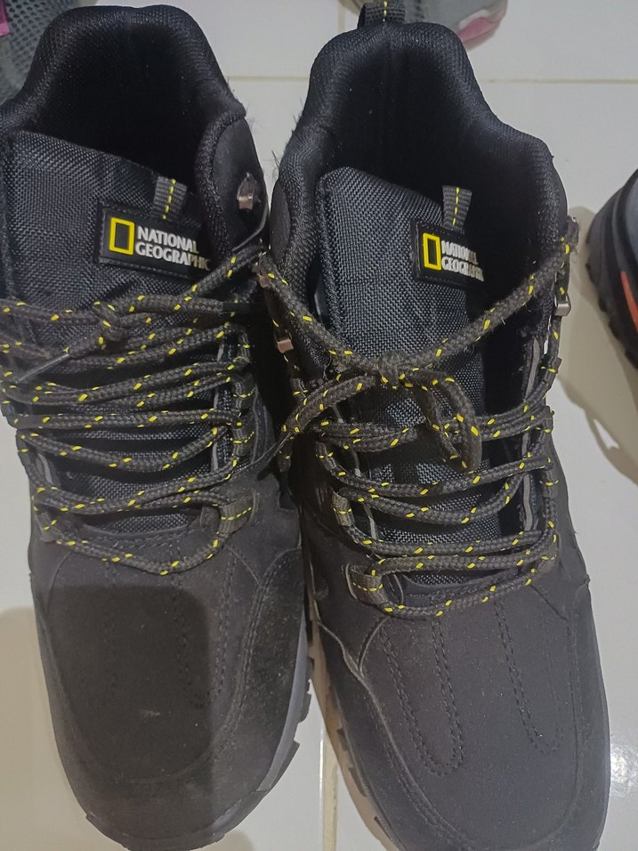 National Geographic erkek outdoor ayakkabılar, bağcıklı ve koyu siyah kauçuk malzemeden üretilmiştir, trend sokak stili için uygundur.