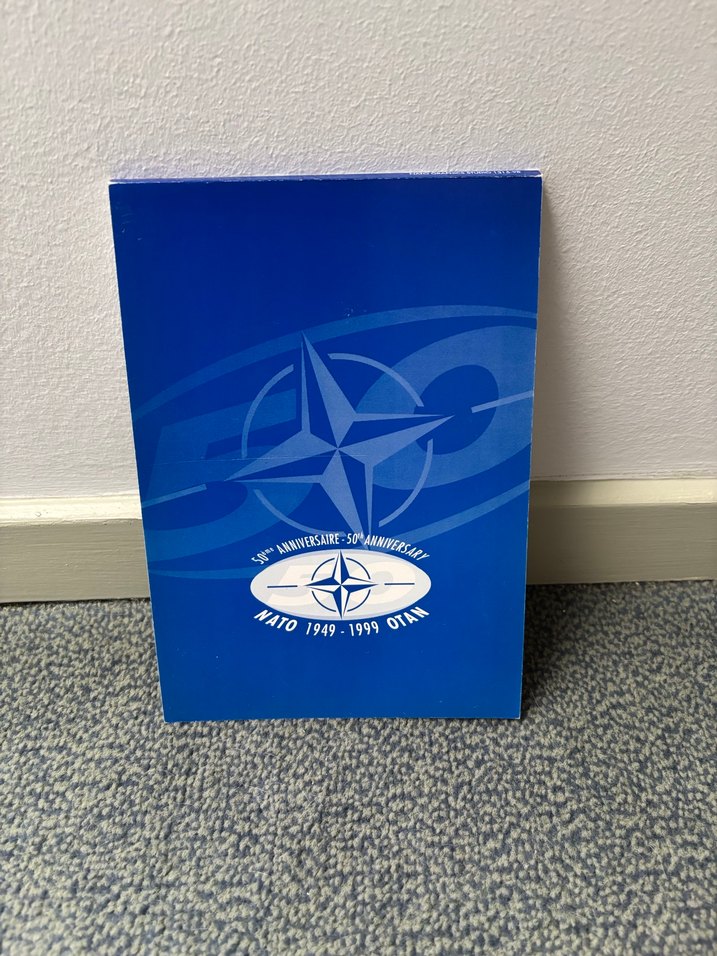 NATO’nun 50. yılına özel (1949–1999) basılmış orijinal not defteri. İç sayfaları boştur. Koleksiyonluk nadir üründür. Temiz ve iyi durumdadır. #NATO #koleksiyonluk #hatıra #vintage #özelbaskı #defter #memorabilia