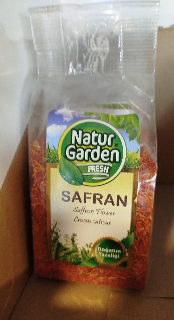 Natur Garden taze safran çiçeği tozu, Crocus sativus'tan üretilmiş, doğal ve renkli bir üründür. Deve tüyü rengindedir.