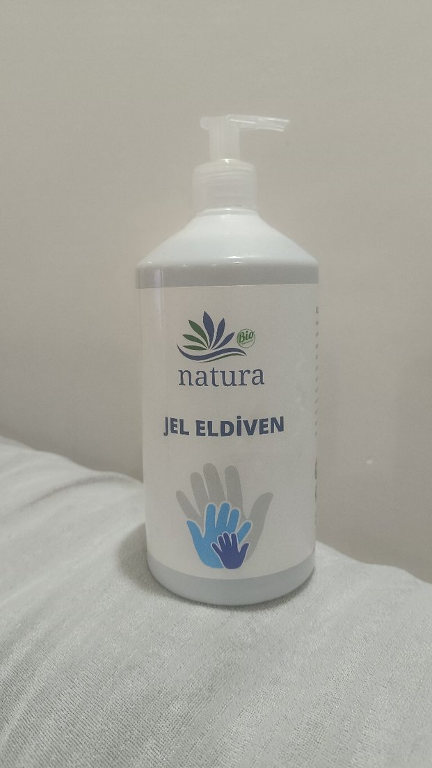 Natura Jel Eldiven, eller için nazik formüle sahip pompalı sıvı eldivendir 1 litrelik şişede sunulur.