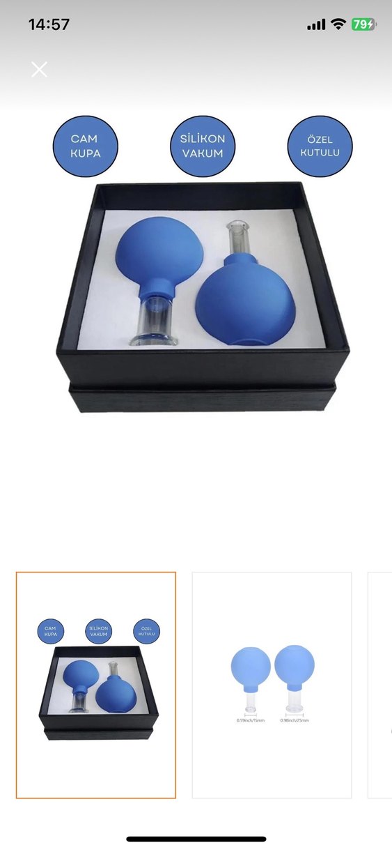 Naturachi slikon vakumlu cam yüz masaj kupası seti 2’li mavi renk