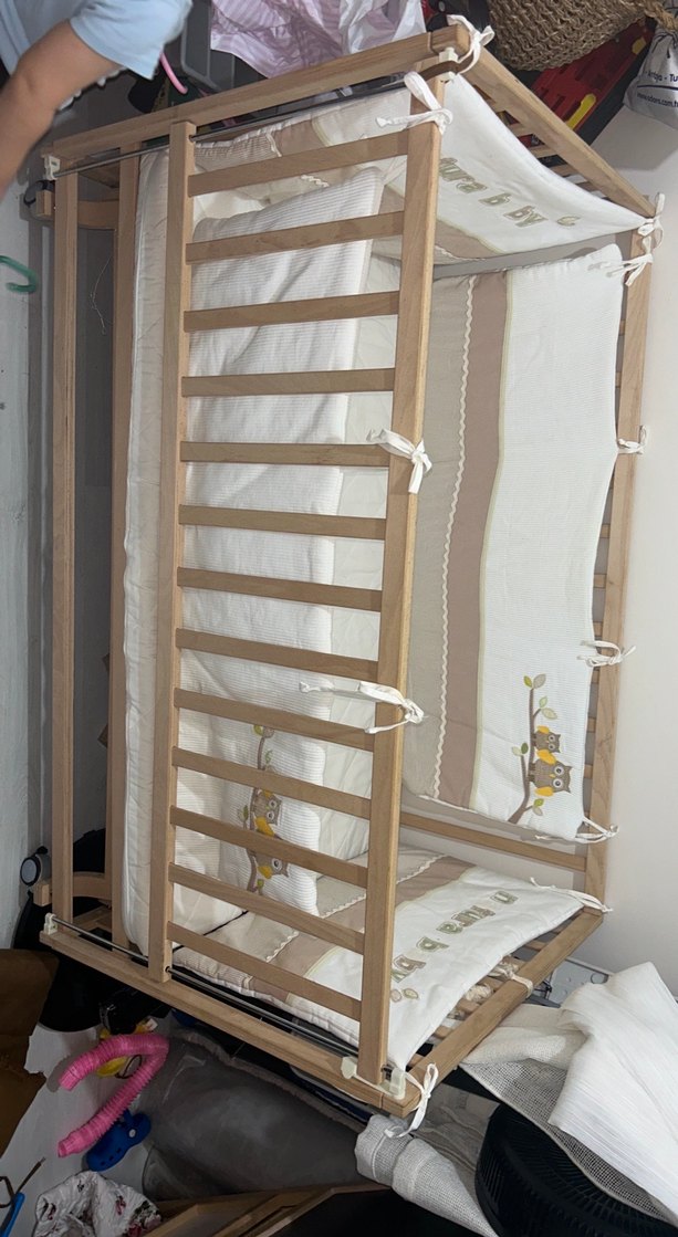 Açık bej renkte, natural ahşap sallanır tekerlekleri sayesinde istediğiniz yere götürebilirsiniz . Son fotoğrafta kademeleri var bebeğinizin ayına göre yatak kısmını derinleştirebilirsiniz. Biz çok kullanamadık bebeğim genelde yanımda yatmayı tercih etti. Komple takımı ve döşeğiyle birlikte göndereceğim hepsi yeni ayarında ve temiz . Sadece koruma bariyerinde öndeki bağlama kısmının bağı kopmuş bulamadım. Çok kolay telafi edilebilir bişey çilek mağazasından almıştım . Alana hayırlı olsun bu fiyata kaçırmayın derim. Ben aldıgımda bile sattığım fiyatın 3 katıydı tam takım olarak. Alana yanında anakucagı kanguru d hediye edeceğim Solomon baby marka. Onu da hiç kullanmadım
