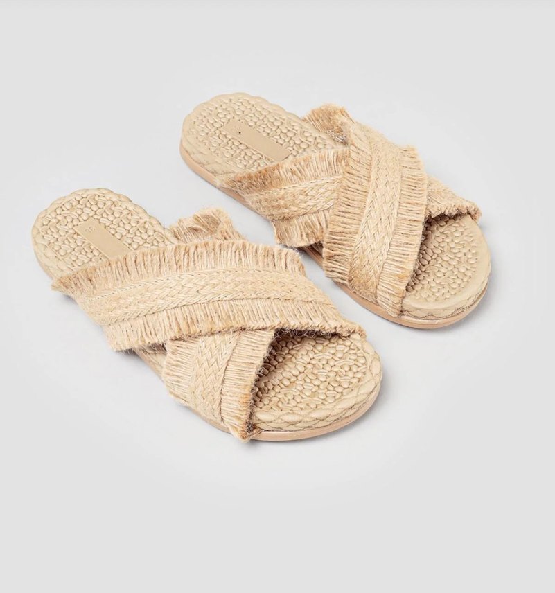 Natural Hasır Kadın Terlik 38 Numara Kahveçekirdek Desenli Rahat