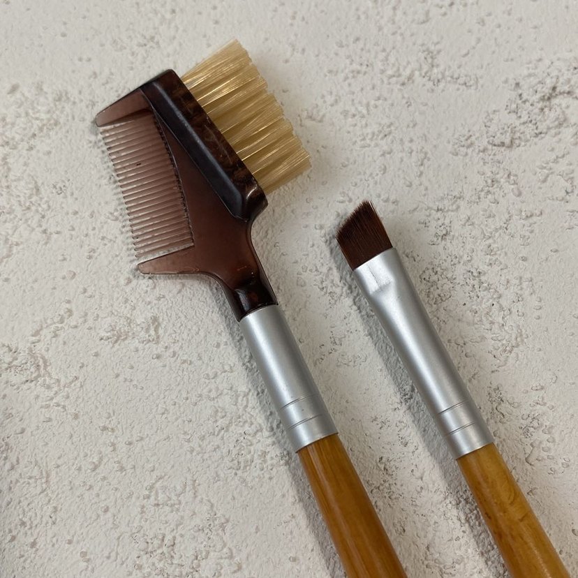 Naturalove Ahşap Saplı Göz Makyajı Fırçaları (2 Adet). Soldakini kaşlarınızı taramak ve düzeltmek sağdakini ise eyeliner ve kirpik diplerine far sürmek için kullanabilirsiniz. Sadece birer kere kullandım, çok fazla fırçam olduğu işin elden çıkarıyorum. Tertemizdir.