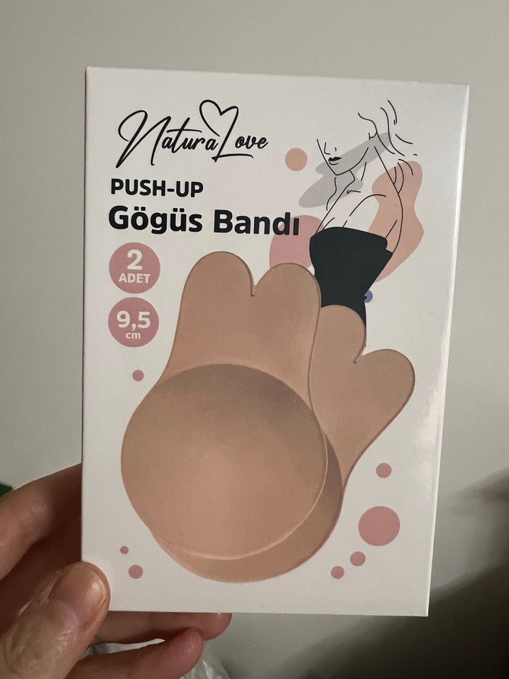 Sıfır ambalajlı üründür. Bej renkte, 9,5 cm kısa uzunlukta push-up göğüs bandı. Pakette 2 adet ped mevcuttur. #göğüsbandı
