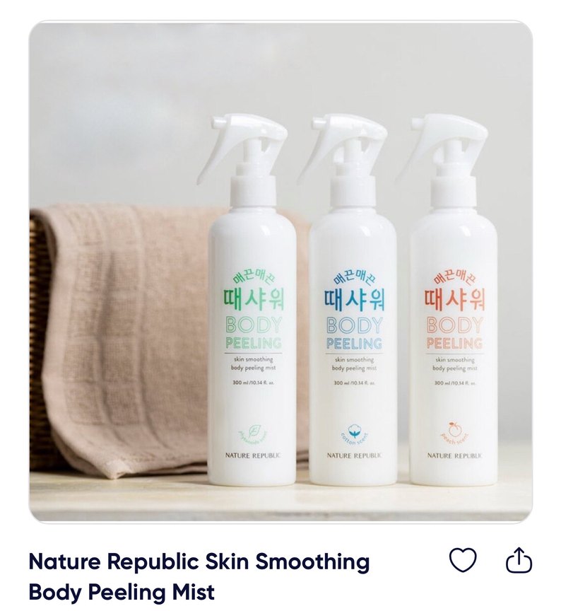 Nature Republic Vücut Peeling Mist, cildi nazikçe soyup pürüzsüzleştiren sprey formüle sahiptir. Cilt dokusunu yeniler ve canlandırır.