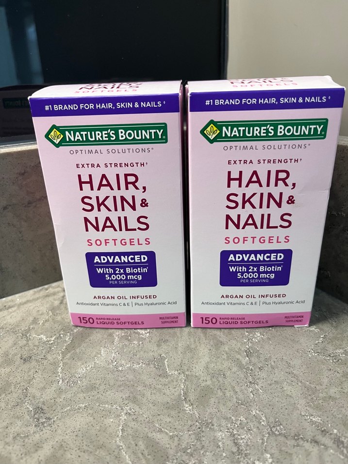 Nature's Bounty Saç, Cilt ve Tırnak için argan yağı ve 2 kat biotin (5.000 mcg) içeren ekstra güçlü softjel. Her kutuda 150 adet yumuşak jel bulunur. Ürünü Amerikadan aldım, sınırlı sayıda kaldı elimde, çok güzel bir ürün, içeriğini lütfen inceleyin