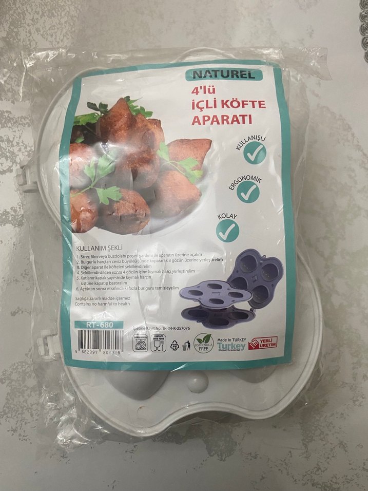 Naturel markanın khaki renkli, kullanımı kolay ve ergonomik 4'lü içli köfte aparatı seti, içli köfte yapımını pratik hale getirir.