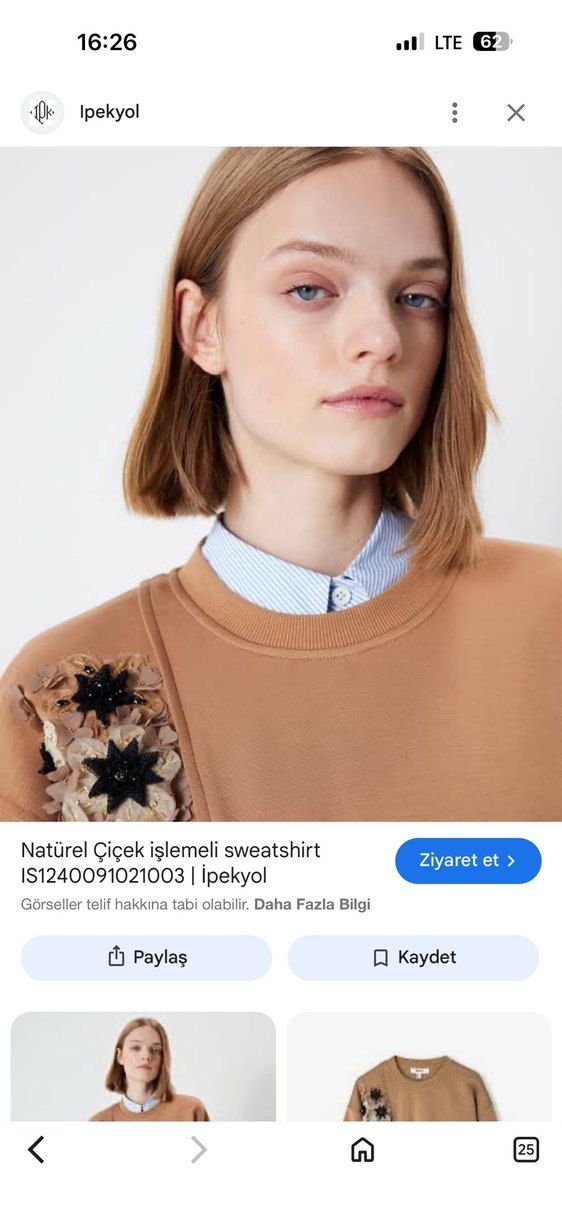 Bej renkli, yuvarlak yaka, kısa kollu ve bol kesim sweatshirt. Natürel çiçek işlemeleri ve kürk detayları bulunur. Günlük kullanım için uygun, yumuşak sentetik kumaştan yapılmıştır.