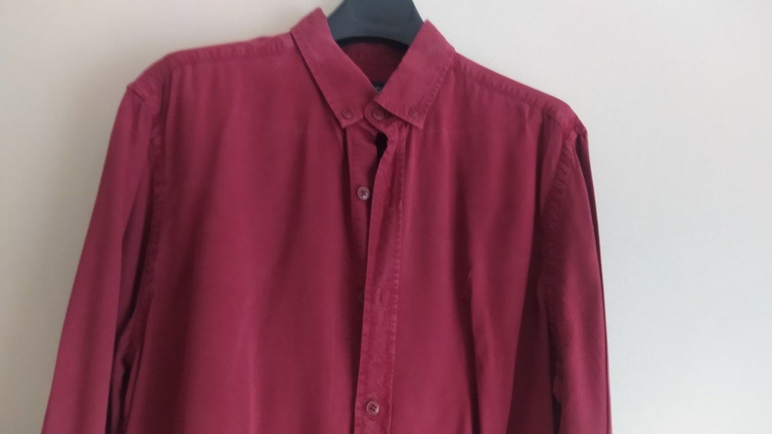 Orijinal Nautica Bordo renkli, parlak görünümlü ve yakalı erkek gömlek. Uzun kollu, düğmeli ve hafif bol kesim. İpek gibi yumuşak kumaştan, ofis ve günlük kullanıma uygun ipek gibi bir gömlek Beden m/L boy ensede 80cm göğüs koltuk altı 52cm çevresi 104cm