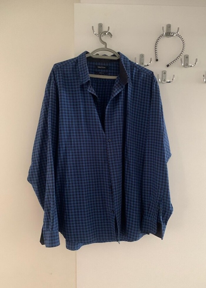 NAUTİCA CLASSİC FIT ERKEK GÖMLEK 2XL BEDEN YENİ GİBİ FAZLA GİYİLMEDİ. 2 kol arası düğmeler kapalı şekilde 73 cm. boy omuzdan erkeğe 80 cm. #NAUTİCA #GÖMLEK #ERKEKGÖMLEK
