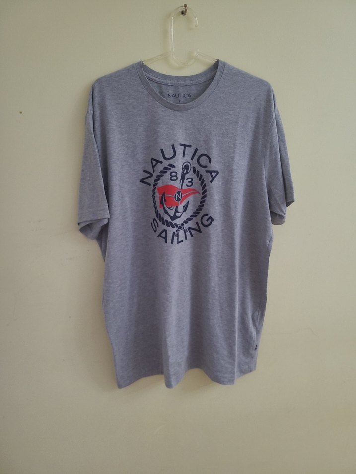 Gri renkte, kısa kollu, yuvarlak yaka ve pamuklu kumaştan yapılmış Nautica erkek tişörtü. Baskılı tasarım ve düğmeli detay içerir, rahat kesim ve normal boyda. ⚓