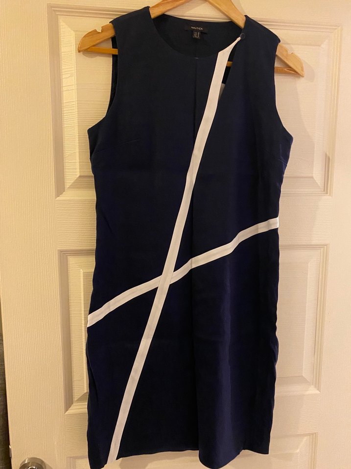 Kolsuz, lacivert, kesik yakalı ve drapeli tasarıma sahip. Regular fit, midi boy, desensiz ve ofis için uygun