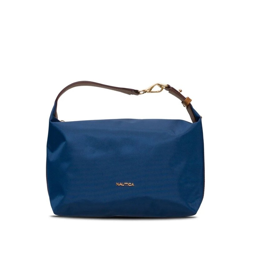 Nautica markalı, koyu mavi renkli, fermuarlı, sentetik kumaştan kadın çapraz çantası. Minimalist, desensiz ve normcore tarzda, günlük kullanım için uygundur.