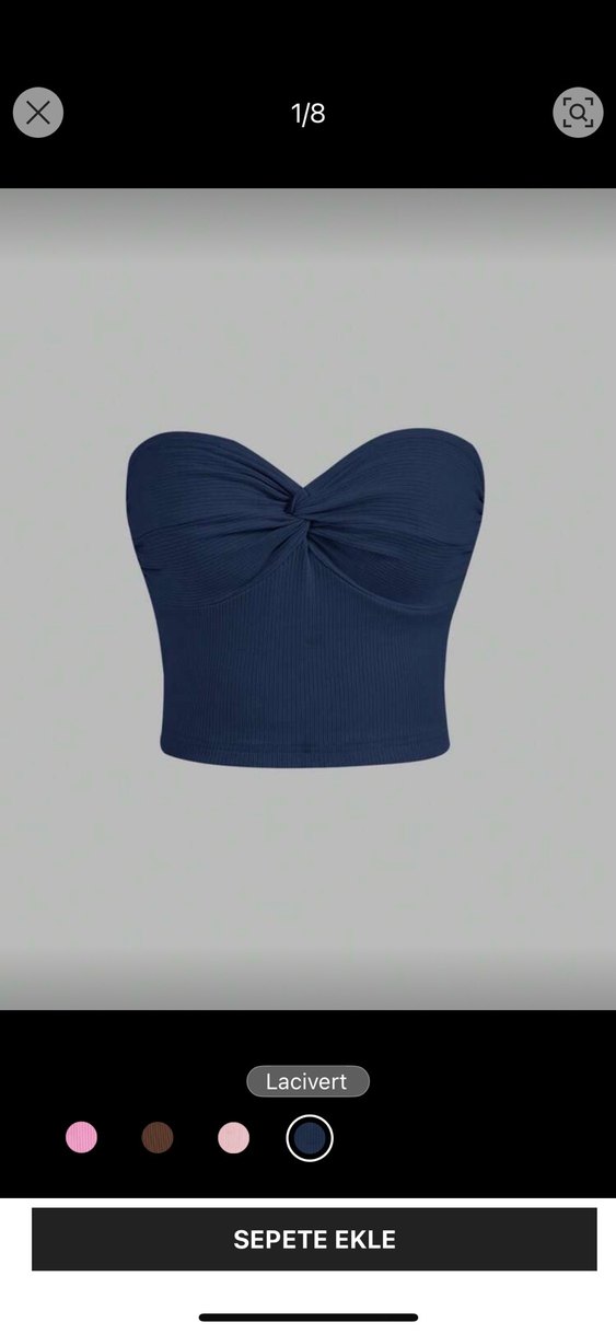 Lacivert renkli, pilili ve straplez kesime sahip, sentetik kumaştan yapılmış, vücuda oturan bir büstiyerdir.