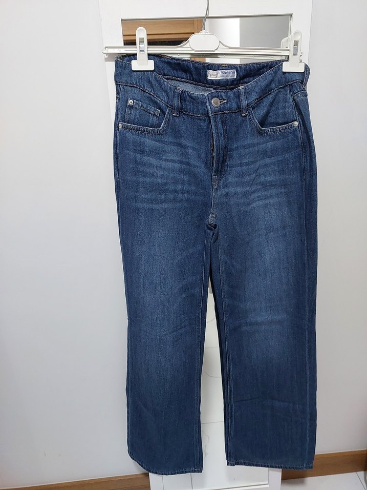 Navy mavi denim kadın jean, regular fit ve midi boyda, günlük kullanım için sade ve zahmetsiz şıklık sunar.
