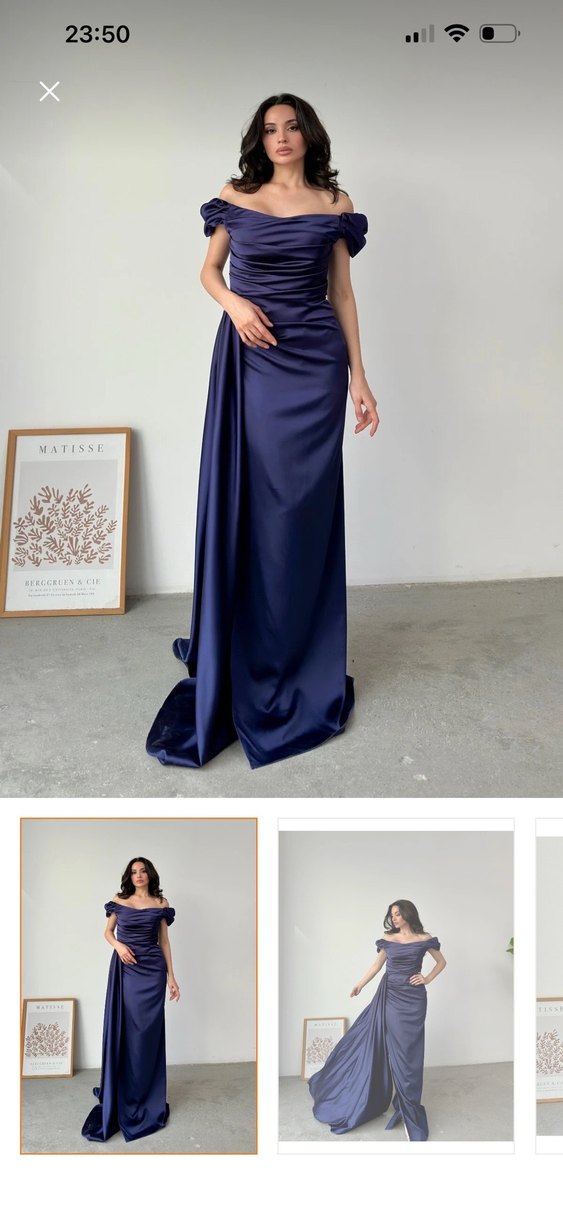 Navy Drapeli Kadın Uzun Abiye Elbise