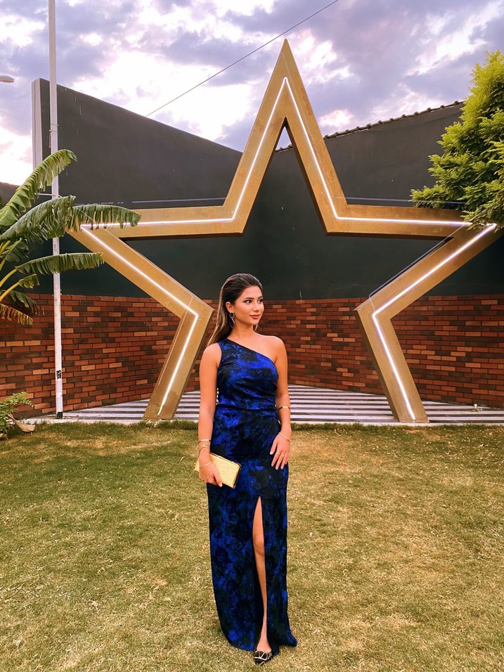 Kendi tasarımım, Navy mavi, drapeli tasarıma sahip uzun abiye elbise. Straplez yaka, regular fit ve önü yırtmaçlı. Düğün ve özel davetler için uygundur. ✨