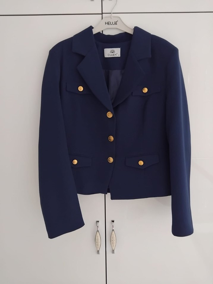 Navy renkli süet kumaştan yapılmış, düğmeli, kısa kesim ve regular fit kadın blazer ceket. Ofis için modern klasik tarzda, uzun kollu ve desen içermeyen model. ✨