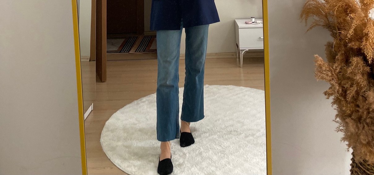 Navy Renk Rahat Kesim Midi Kadın Kot Pantolon