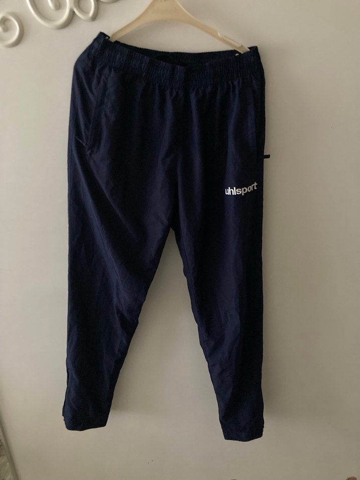 Navy renkli, bol kesim ve fermuarlı ceplere sahip, yumuşak ve sıcak kumaştan yapılmış erkek outdoor sweatpant. Paraşüt boyu 98