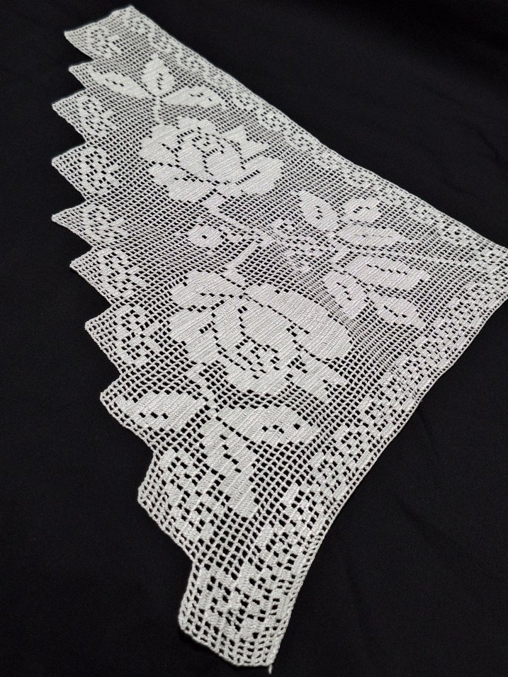 El örgüsü dantel kenarlık, gül desenli ve geleneksel tarzda, tekstil süslemeye uygundur.