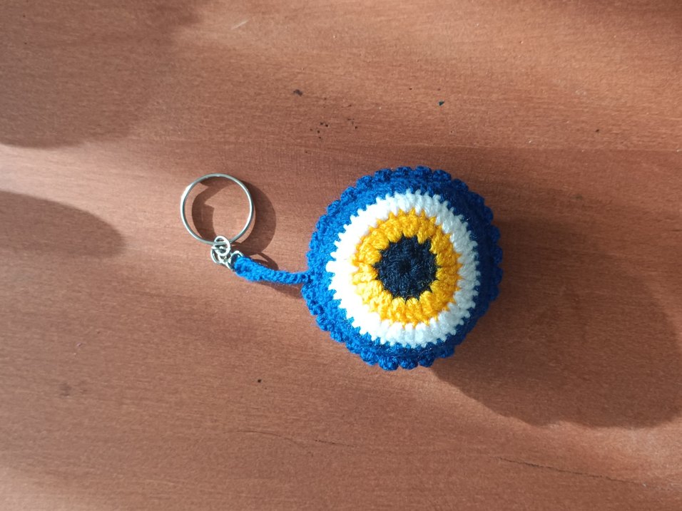 Renkli, örgü tasarıma sahip bu anahtarlık, rahat bohem tarzıyla retro hippie dokunuş katıyor.