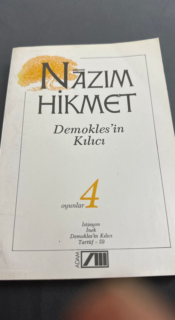 Nazım Hikmet'in 'İstasyon', 'İnek', 'Demokles'in Kılıcı' ve 'Tartuf - 59' adlı dört oyununu içeren kitap.