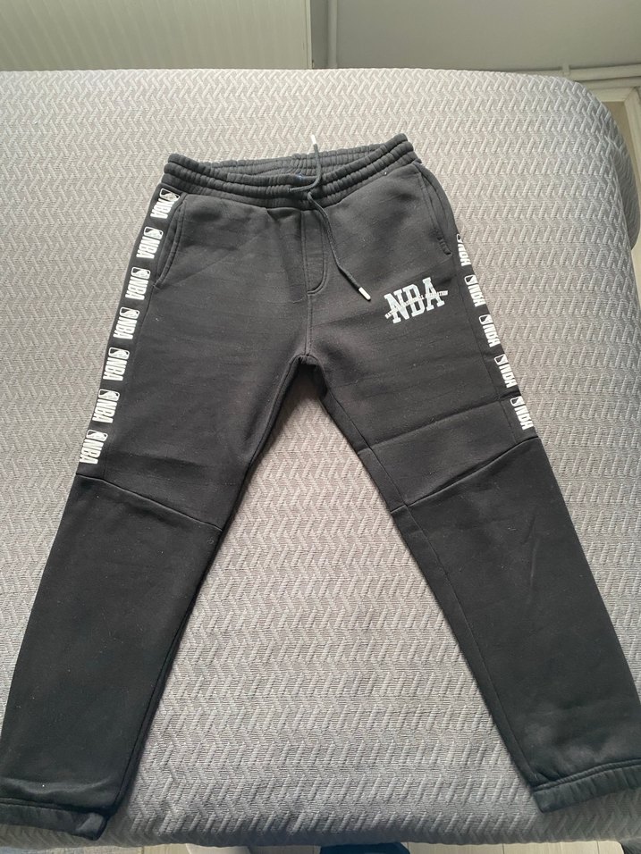 Siyah renkli, bol kesim NBA eşofman altı, kemerli ve yanlarda logo şeritleriyle spor konforu sunar.