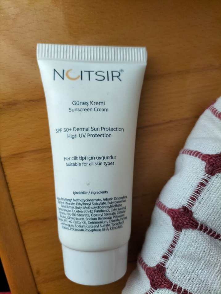 NCITSIR güneş kremi, SPF 50+ ile yüksek UV ve dermal koruma sağlar. Tüm cilt tipleri için uygundur. ☀️