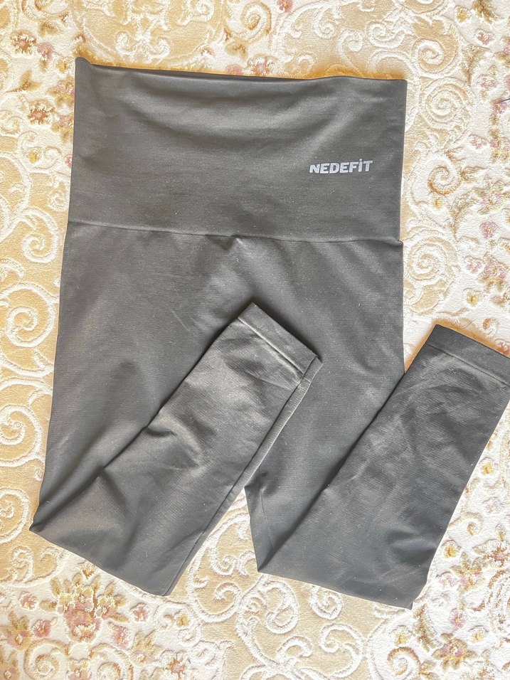 NEDEFiT markalı siyah yüksek bel kaydırmaz, üstündeki tozları süpürüp gönderecegim sentetik kumaşlı kadın spor taytı, rahat ve şık bir görünüm sunar. ♀️
