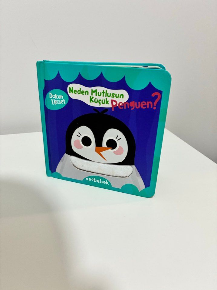 Neden Mutlusun Küçük Penguen adlı dokun hisset çocuk kitabı, farklı dokularla duygusal keşif sunar.