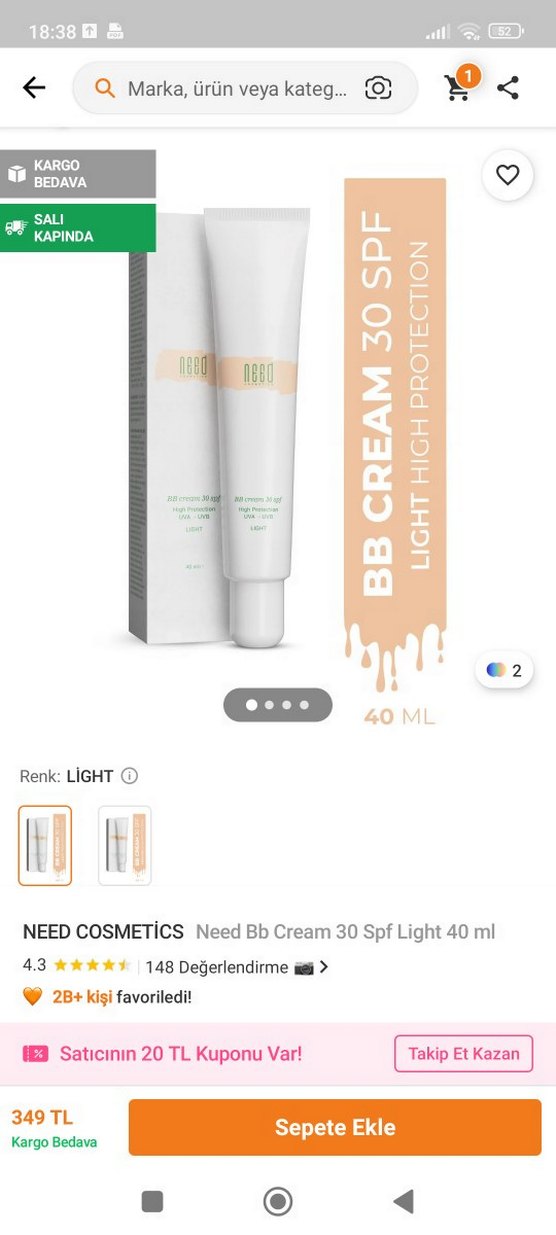 Need Cosmetics BB Krem 40 ml, SPF 30 koruma sağlar, açık bej pastel tonunda doğal bir görünüm sunar. yenidir bir kere deneme amaçlı açtım, 2026 sktsi, light tonu açık tondur, içi dolu 40 ml'dir