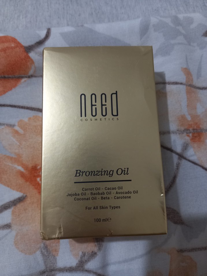 Need Cosmetics Bronzlaştırıcı Yağ, havuç, kakao, jojoba, baobab, avokado ve hindistancevizi yağları içerir. Tüm cilt tipleri için uygundur. Sadece bir kere kullandım kutusuyla beraber gelecektir.