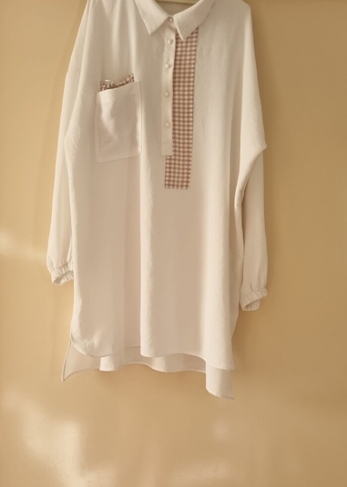 Tertemiz az kullanıldı minik bir leke var cebinde yıkayınca çıkar kolları lastiklidir sayılı giyildi alana hayırlı olsun #nefise #nefisetunik #tunik #beyaztunik #nefisegömlek #uzungömlek #