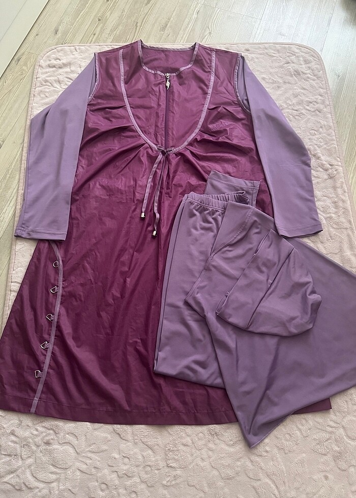 Hiçbir sorunu yoktur, az kullanılmıştır , m-l 38 40 bedene olacaktır. Tunik Boyu 95 cm fotodaki kişi 163 boyunda idi ve diz üstünde duruyor, koltuk altından en ölçüsü 51 cm . tayt tunik, bone ve başlığı bulunuyor. #nehar #haşema