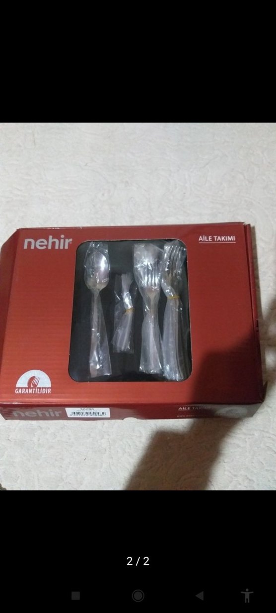 Nehir marka aile çatal, kaşık ve bıçak seti, gri renkte olup kırmızı kutuda ve garantilidir.