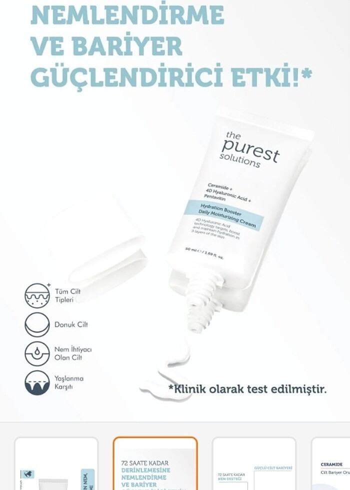 THE PURST SOLUTİONS CEREMİDE &4D HYALURONİC ACİD VE PENTAVİTİN İÇEREN NEMLENDİRİCİ YÜZ KREMİ SON KULLANMA TARİHİ 10.2025 SADECE 1 KEZ DENENDİ ÇOK GÜZEL NEMLENDİRİYOR ETKİLİ BİR KREM ELİMDE ÇOK OLDUĞU İÇİN SATIYORUM.