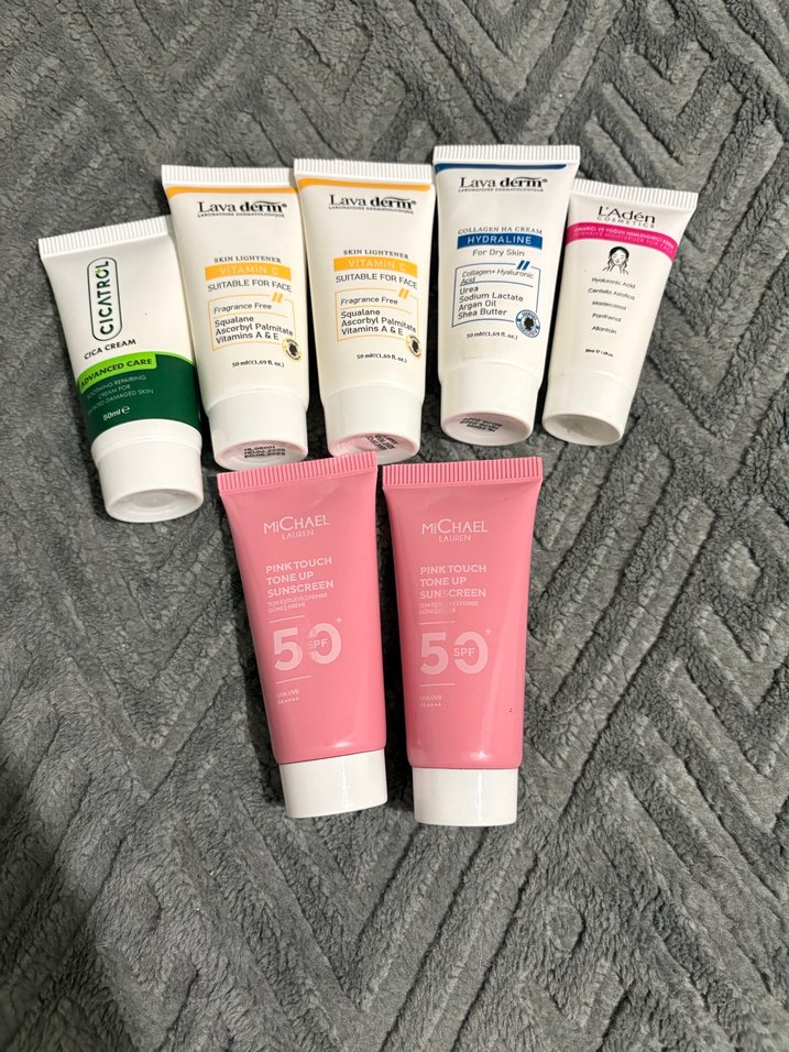 Çeşit çeşit yoğun nemlendirici ve pembe güneş kremleri fiyat ve stok bilgisi için mesaj atınız. Kutuları yoktur hiç biri kullanılmamıştır ağızları jelatinlidir.