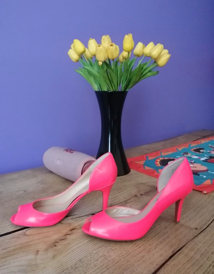 Sadece iki defa giyildi.Fotoğraflarda rengi pembe çıkıyor fakat neon pembe.Topuk boyu 7 cm.Uygun teklifleri kabul ediyorum.